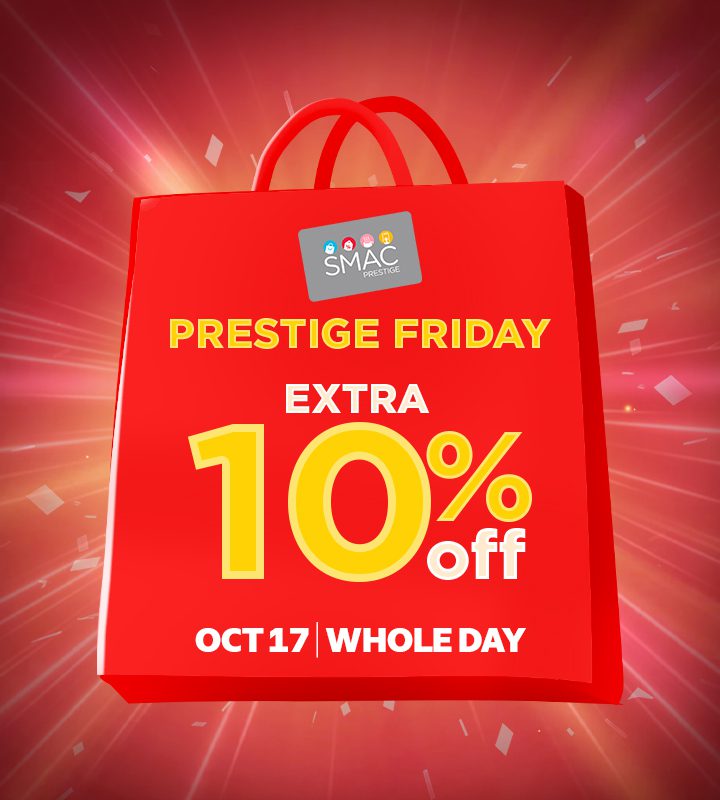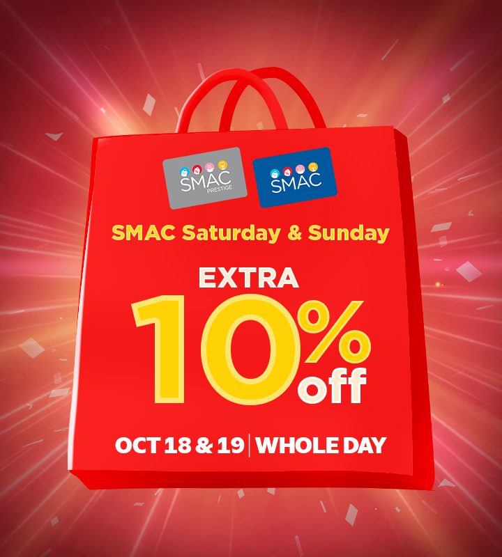 - Additional 10% OFF with your SMAC Prestige (October 17, October 16 for SM Store Delgado) or SMAC (October 18 & 19, October 17 & 18 for SM Store Delgado)