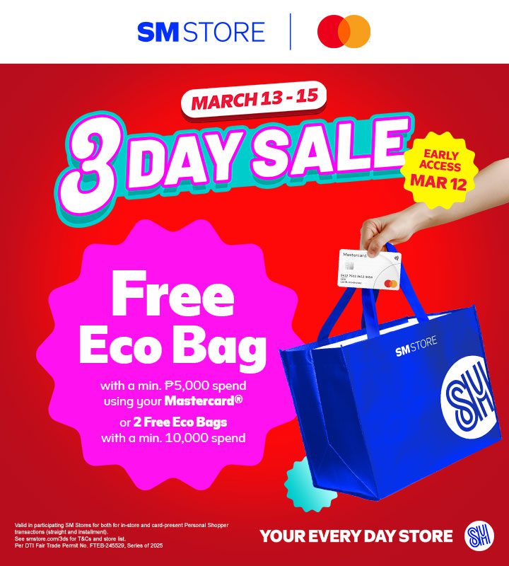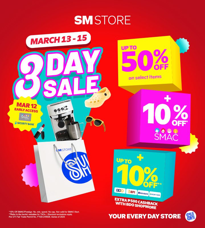 Time to stock up on your everyday items, only at SM Store! Markdowns are up to 50% OFF, plus extra discounts and more, this 3-Day Sale. Don’t miss out on these exciting deals!