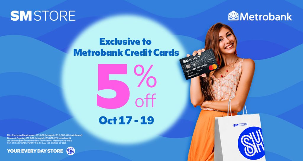 Enjoy 5% OFF from Oct. 17 to 19 with a min. spend of ₱3,000 (straight) or ₱15,000 (installment)! Terms and conditions apply.