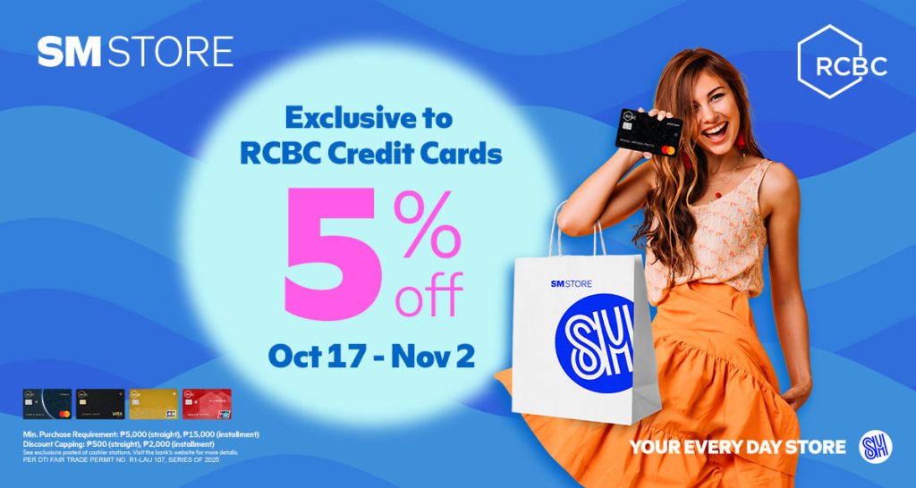 Get 5% OFF from Oct. 17 to Nov. 2 with a min. spend of ₱5,000 (straight) or ₱15,000 (installment)! Terms and conditions apply.