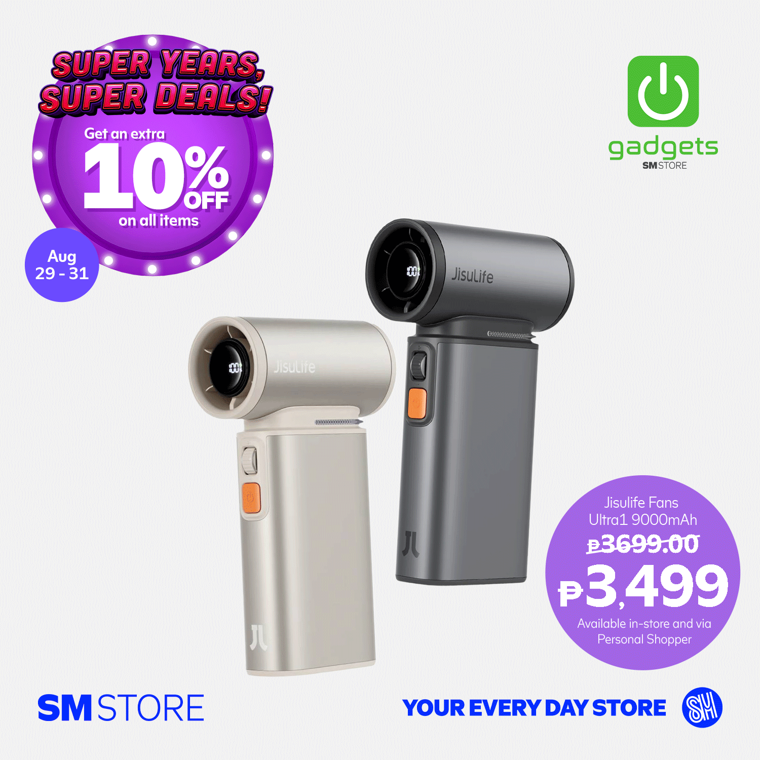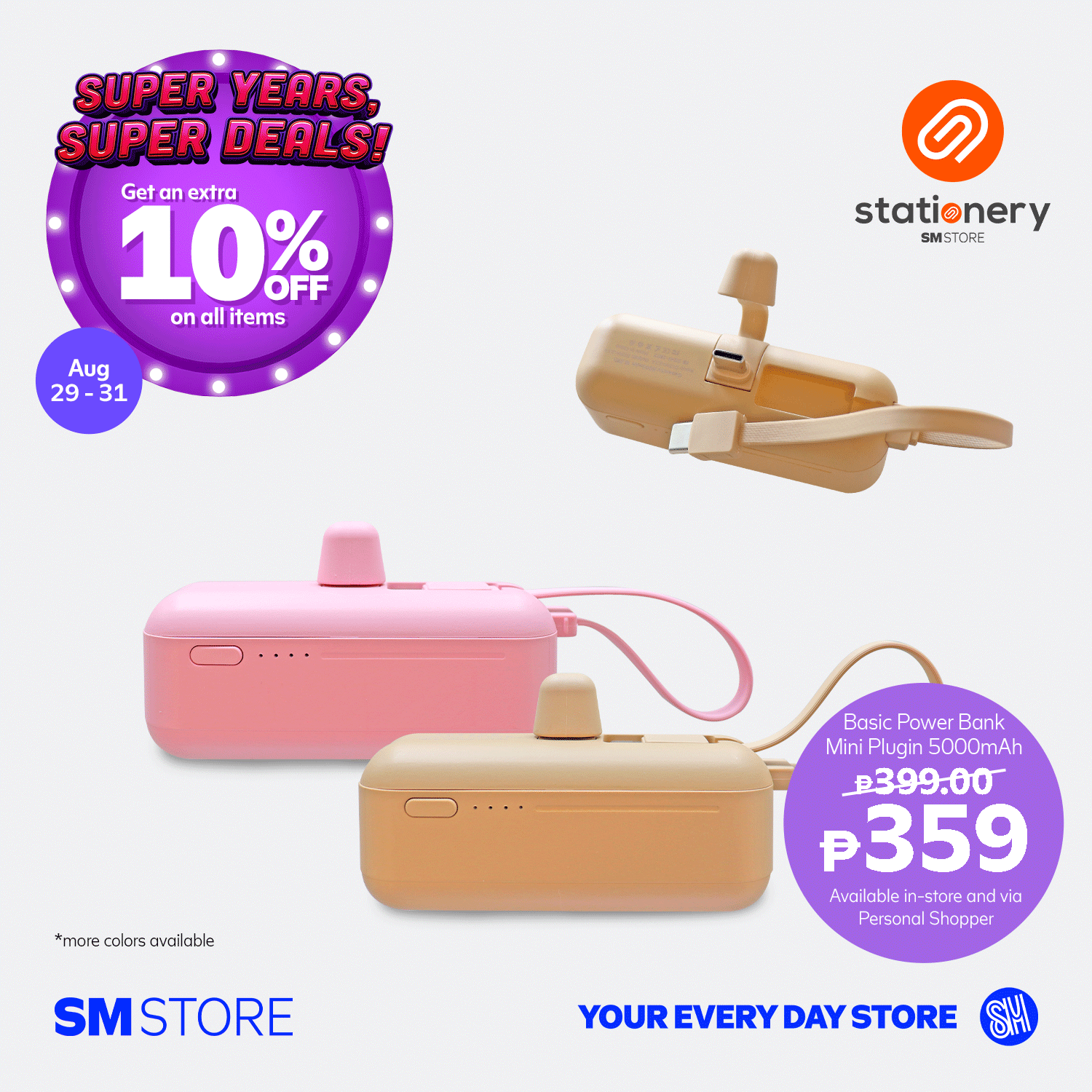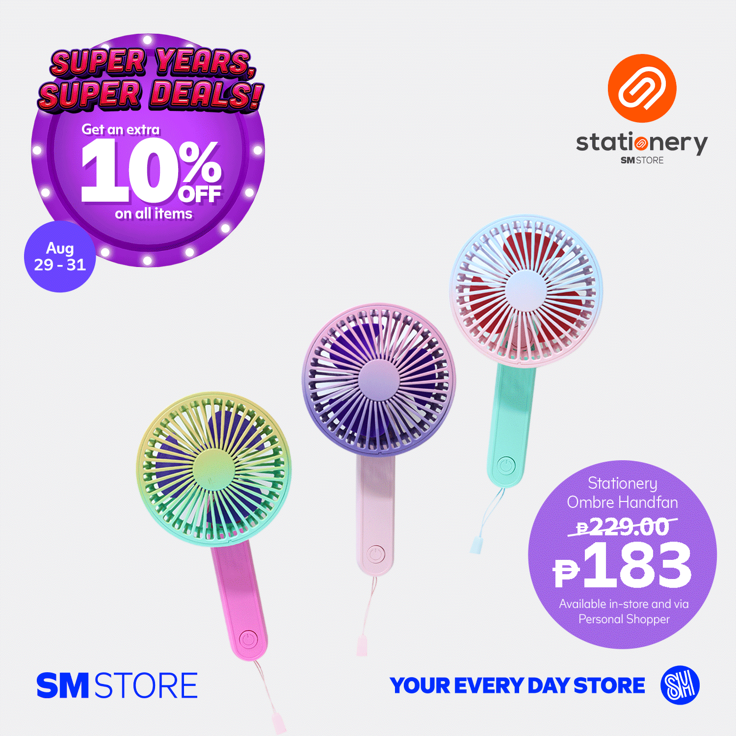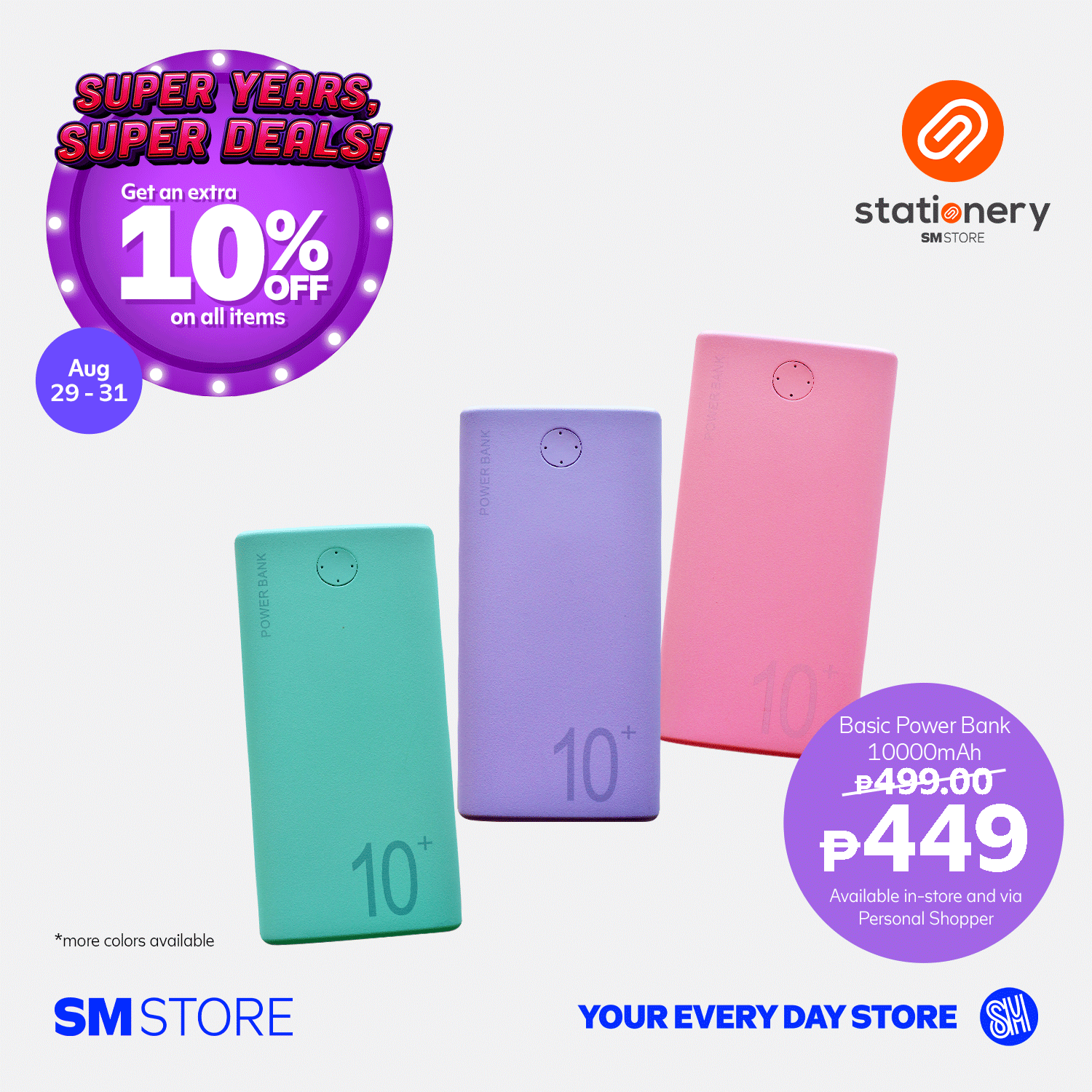 - Customers will get 10% OFF with a minimum single-receipt purchase of ₱3,000 from August 29-31, 2025, in participating SM Store branches.
