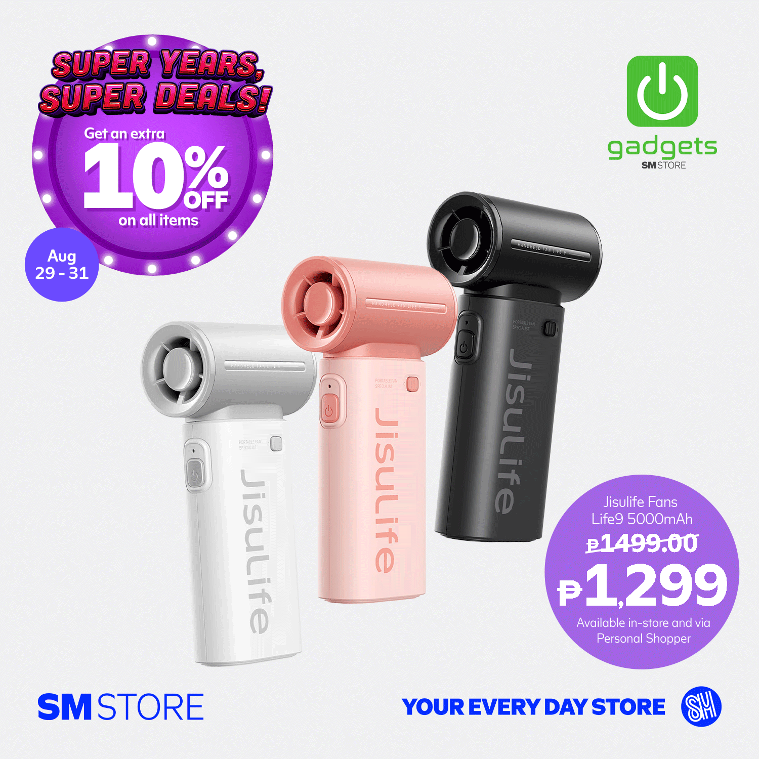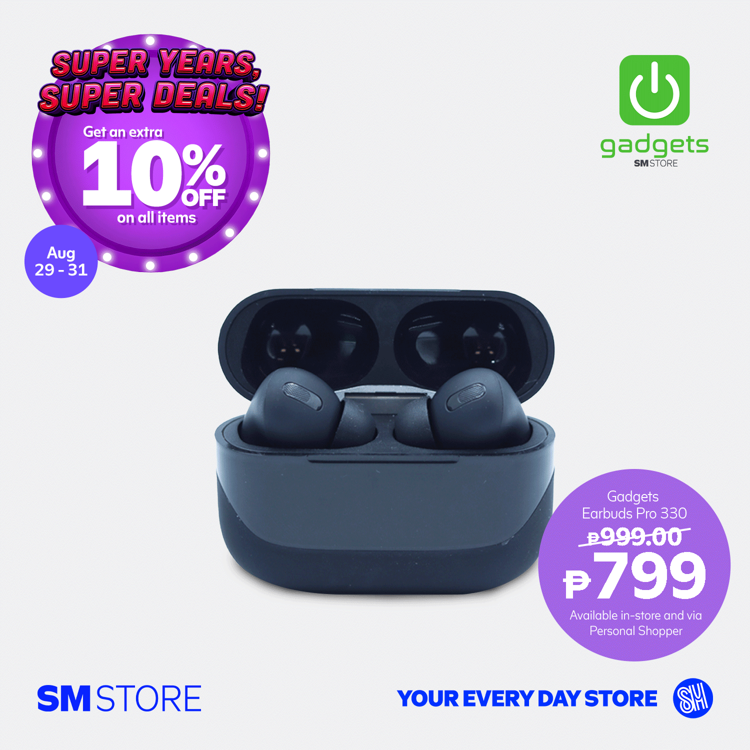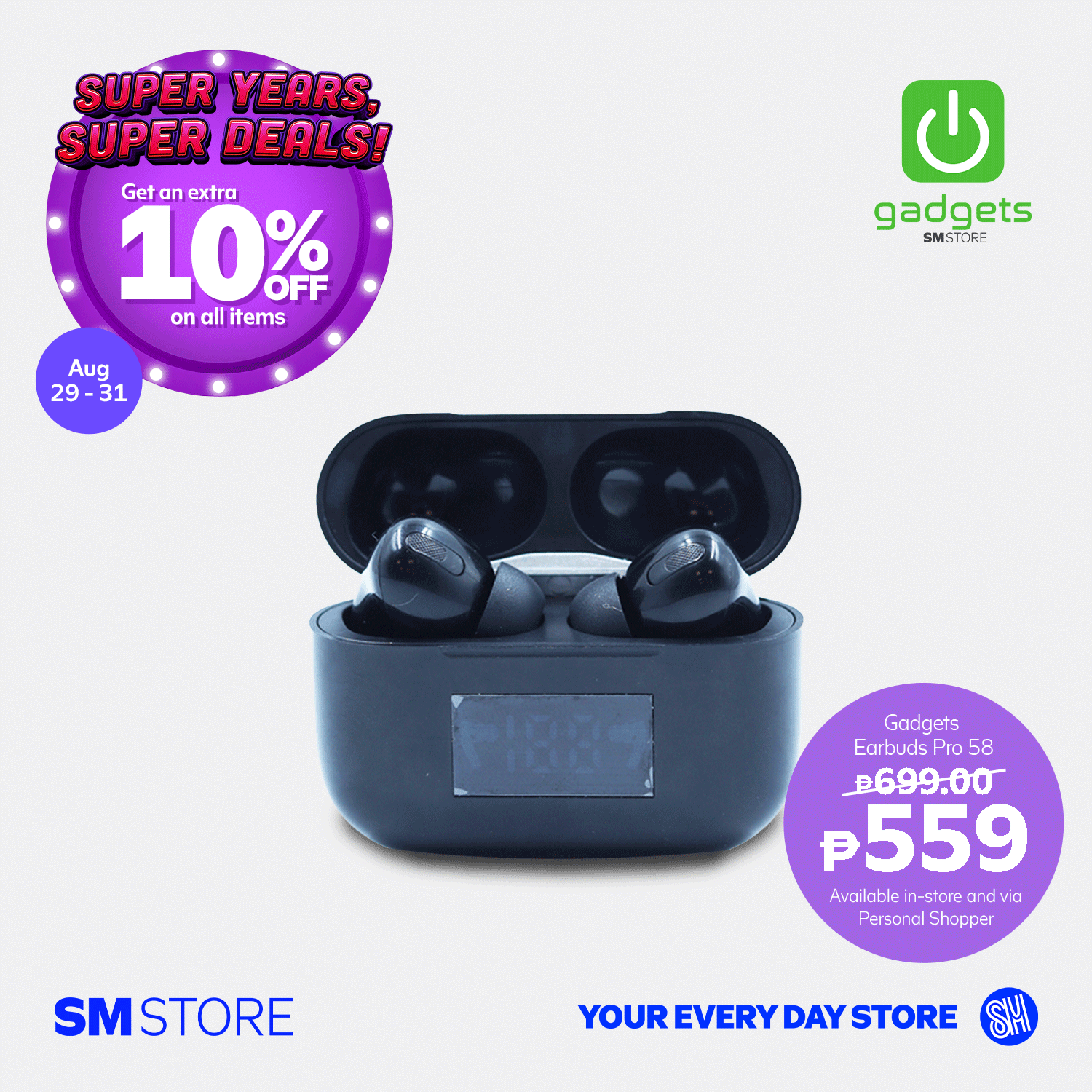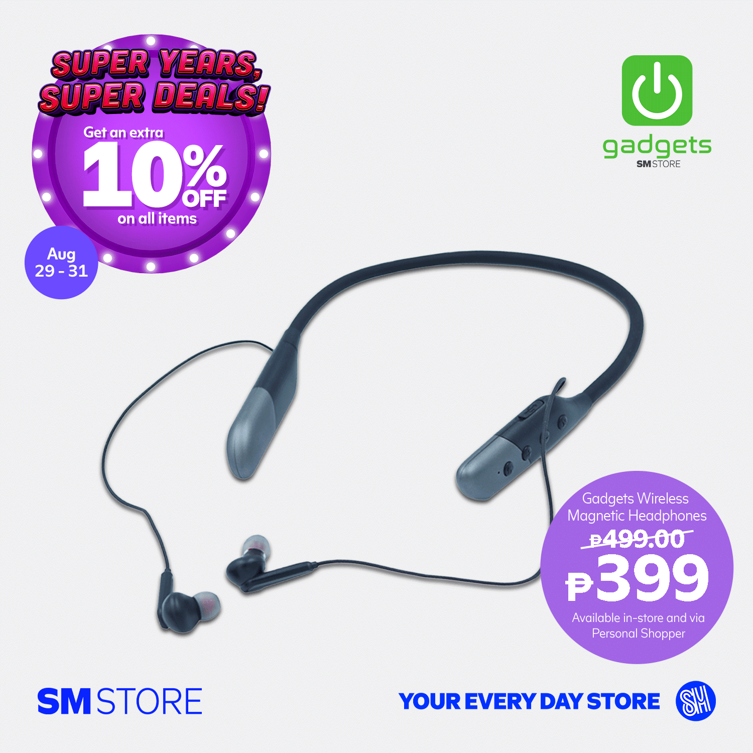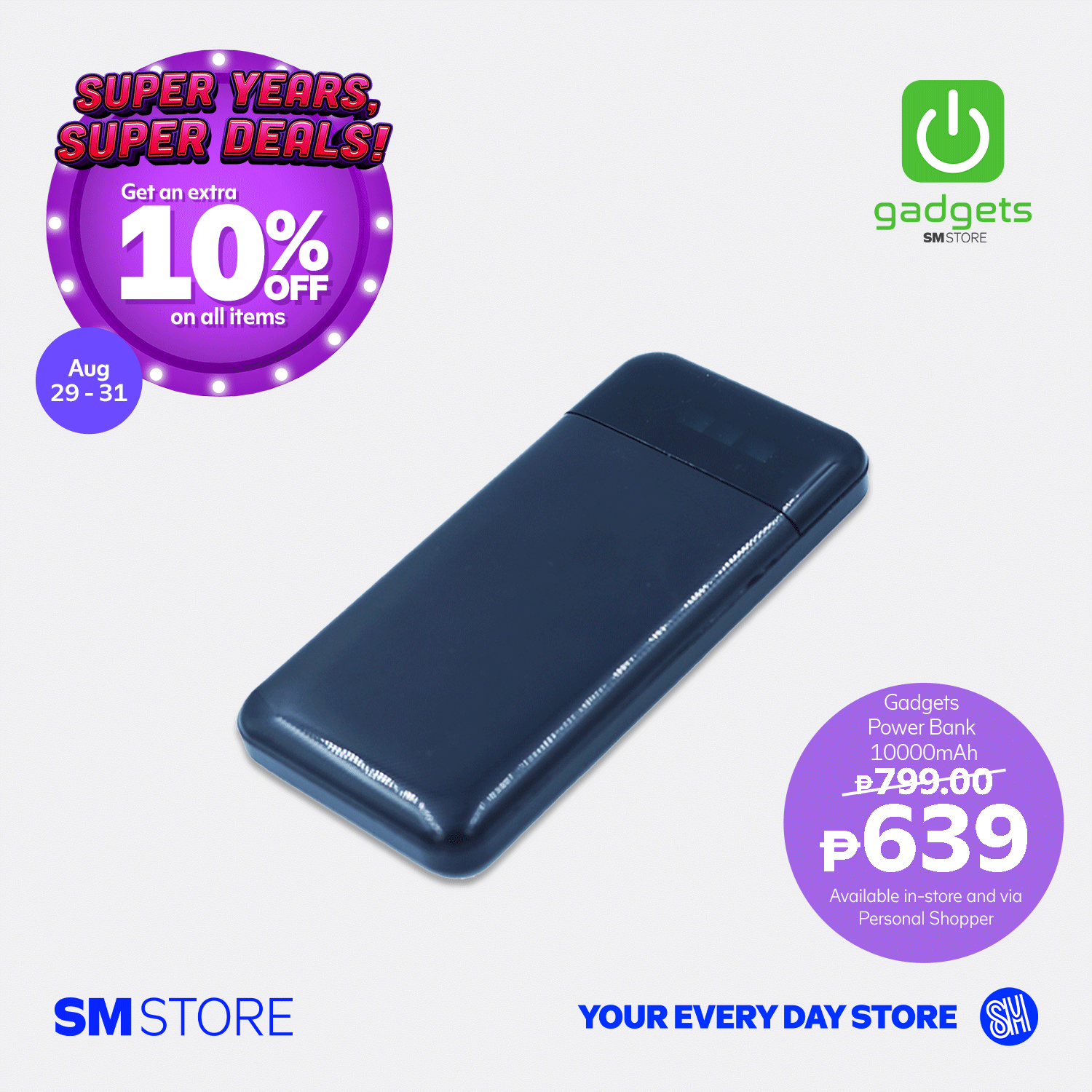- Customers will get 10% OFF with a minimum single-receipt purchase of ₱3,000 from August 29-31, 2025, in participating SM Store branches.